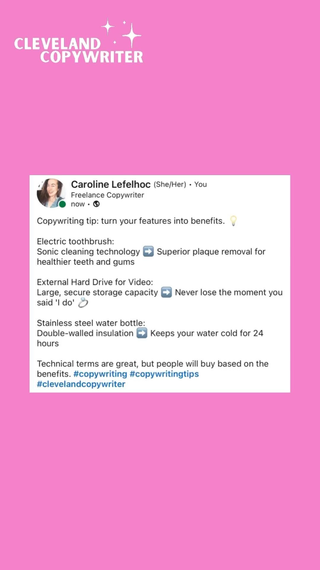 Follow me on Instagram for weekly copywriting tips to level-up your business.